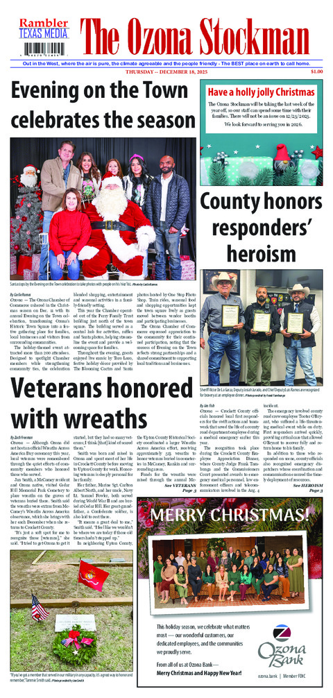Ozona—The Ozona Chamber of Commerce ushered in the Christmas season on Dec. 11 with its annual...
